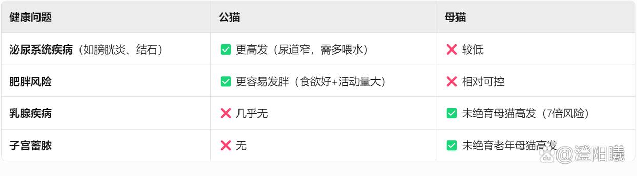 • 母猫:务必绝育(避免乳腺疾病和子宫蓄脓)。