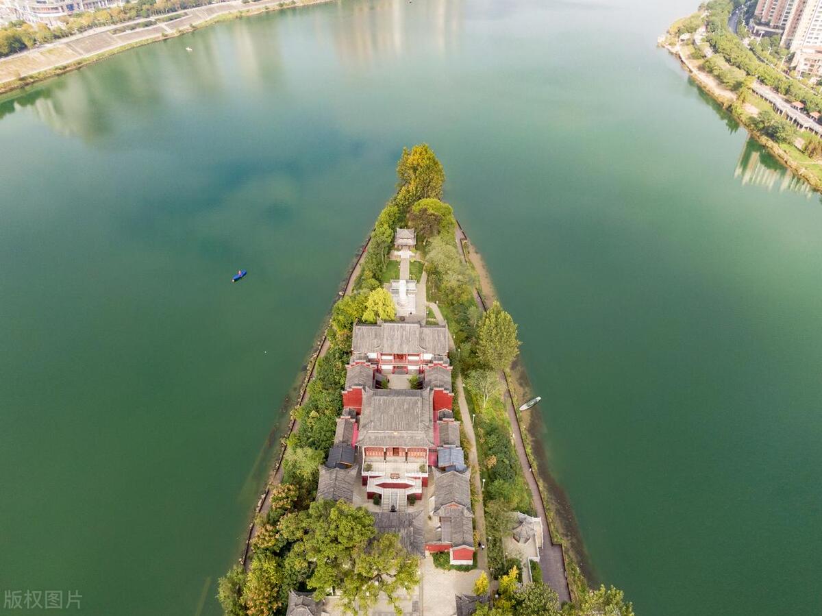 东洲岛上景色如画绿荫密布,亭台楼阁鳞次栉比。蔡伦竹海竹林满坡,修篁绕径。