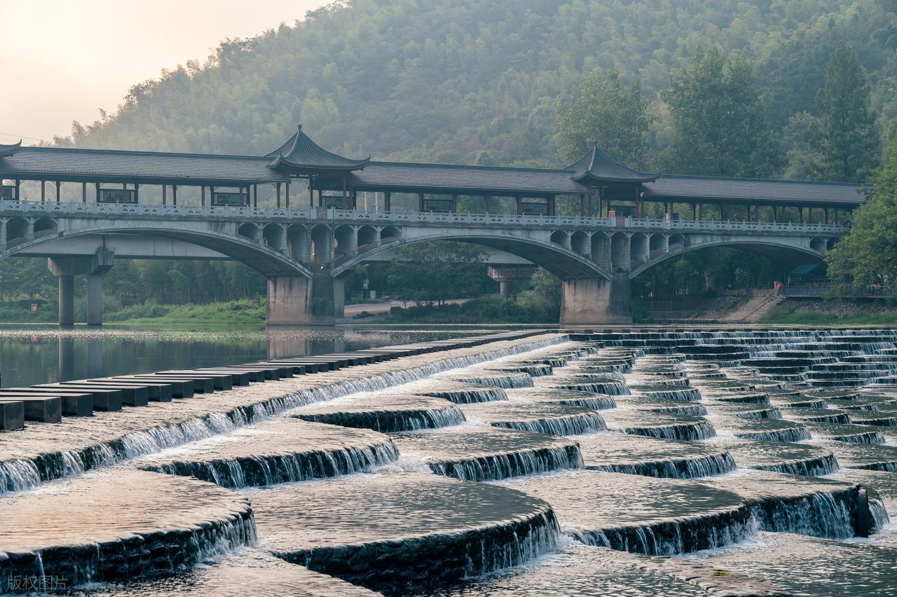 灰瓦白墙的江南古村落,奇山异水,天下独绝。很适合江浙沪周边城市周末自驾游。龙鳞坝是夏日玩水好去处,水流像龙鳞般在这铺展开,搭配远处的古亭远山,仿佛一副江南水墨画。