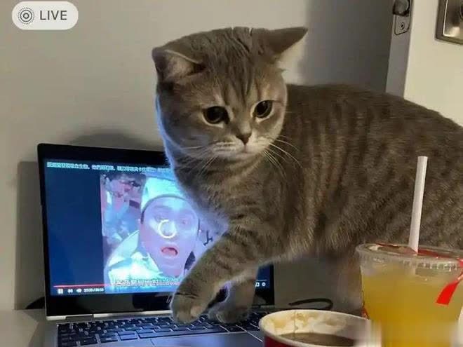 被制止后猫咪本来打算离开,可回头看见两个人类正在大快朵颐,顿时气不打一处来,转身就对着主人一顿“输出”,仿佛在抗议:“你们都吃,为什么不让我吃?”