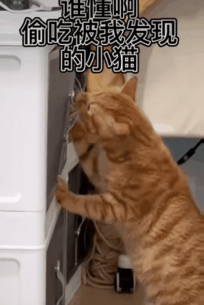 还有些猫是天生的“演技派”——一只橘猫熟练地打开零食柜时被主人撞个正着。