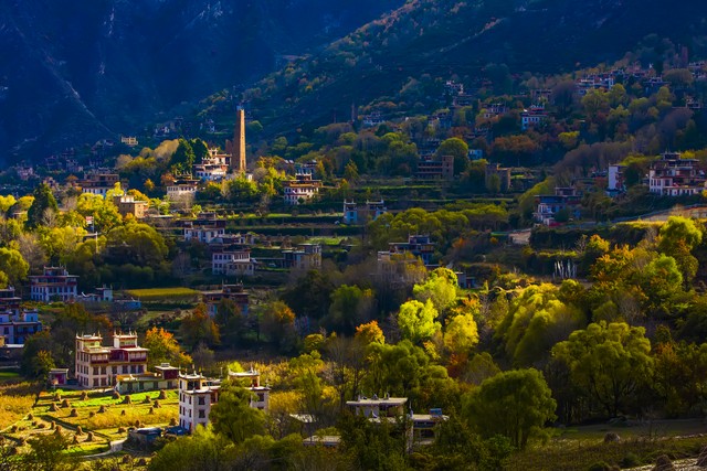 四川甘孜丹巴县的藏寨群,被誉为“藏区童话村落”。碉楼与藏式民居依山而建,白色外墙、朱红屋檐与青山碧水相映成趣。甲居藏寨是典型代表,春有梨花如雪,秋有红叶似火,晨雾中炊烟袅袅,宛如世外桃源。这里还保留着古老的嘉绒藏族文化和神秘的“东女国”遗风。
