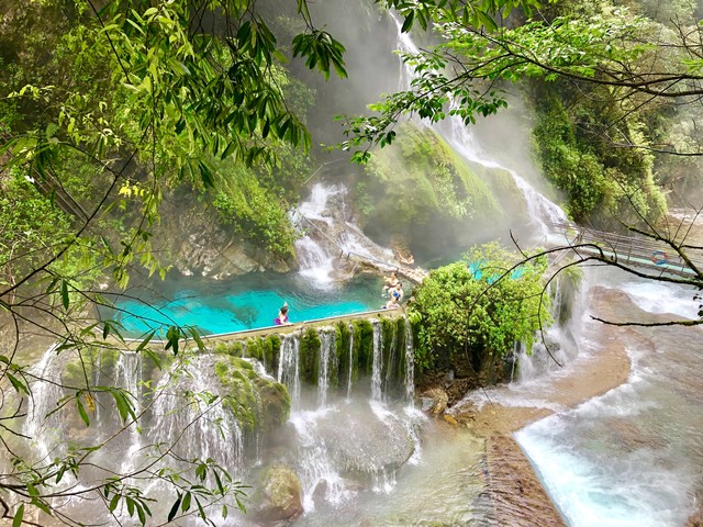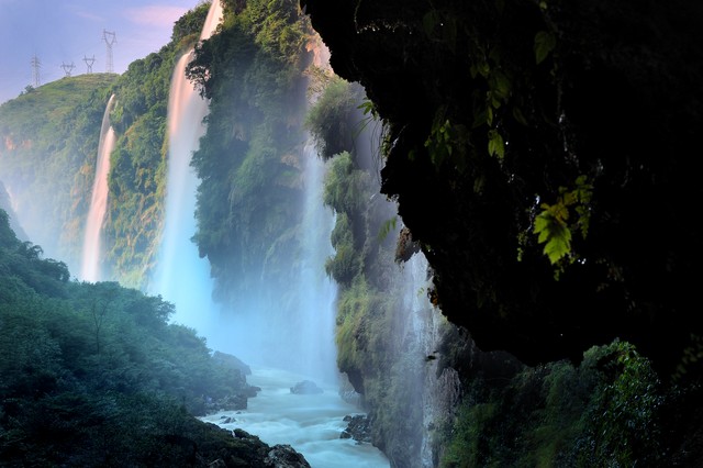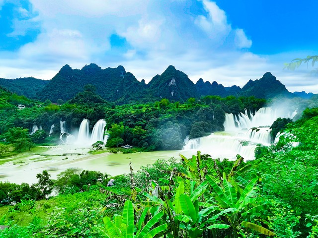 横跨中越边境的亚洲第一大跨国瀑布,三级跌落总宽200余米。归春河水从70米高崖倾泻,与越南板约瀑布相连如双龙戏珠。雨季时水声如雷,旱季则显露岩壁肌理,竹筏可直抵瀑下水雾弥漫处。