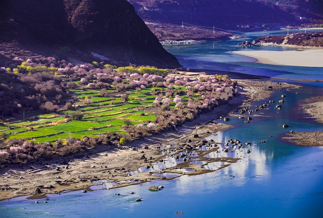 西藏林芝的7782米高峰,藏语意为“直刺苍穹的长矛”。终年云雾笼罩,难得全貌,故称“羞女峰”。春季桃花盛放时,雪山脚下雅鲁藏布江大拐弯处,粉白花海与冷峻雪峰构成极致反差美学。
