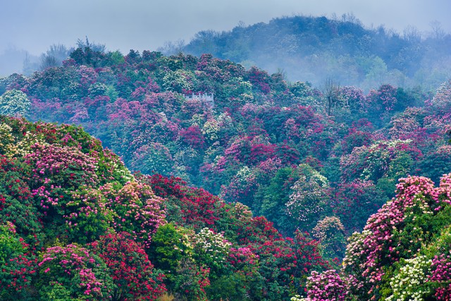 贵州毕节的天然杜鹃王国,绵延125平方公里。马缨杜鹃、露珠杜鹃等41个品种,每年3-5月次第绽放,红、白、紫、黄铺满群山,彝族的“祭花神”仪式更添神秘。周边九洞天、织金洞等喀斯特景观与之呼应,形成“花与岩的狂欢”。