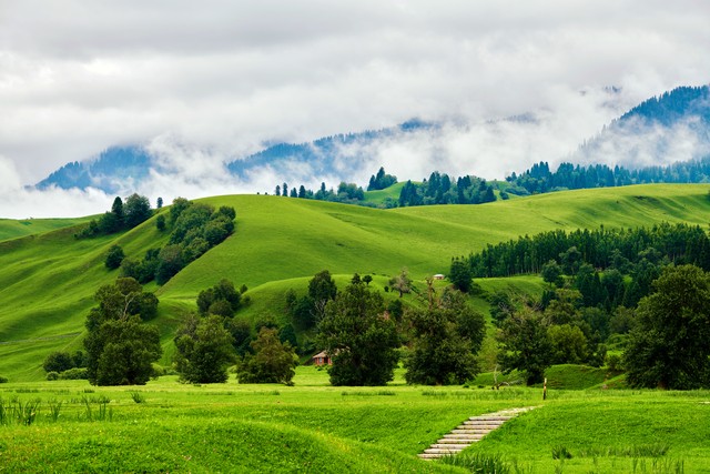 新疆伊犁河谷的“空中草原”,平均海拔1800米。夏季山花烂漫,牛羊如云,哈萨克牧民的毡房点缀其间;冬季银装素裹,宛如北欧雪原。乘马穿越河谷,或登上观景台俯瞰巩乃斯河蜿蜒,都能感受“塞外江南”的磅礴与柔美。