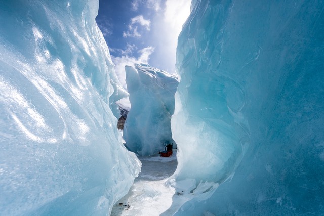 西藏珠峰北坡的“冰塔林迷宫”,海拔5600-7000米。无数冰塔如利剑直指苍穹,冰洞透出幽蓝光芒,冰裂隙深达百米。作为世界最高峰冰川群,其消融速度警示气候变迁,登山者在此仰望珠峰,星空下冰原宛如外星秘境。