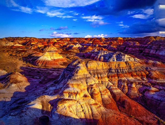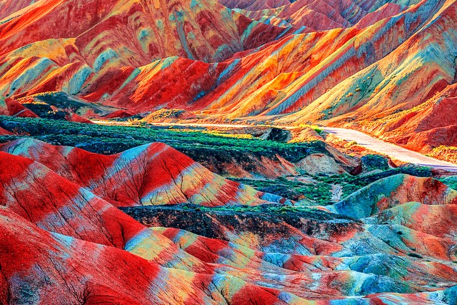甘肃张掖的“大地调色盘”,1.5亿年沉积的砂岩在风雨侵蚀下,形成红、黄、橙、白的斑斓条纹。冰沟丹霞的“卢浮魅影”如中世纪城堡,七彩丹霞的“神龟问天”在日落时燃烧似火,《太阳照常升起》等电影在此取景,地质奇观与艺术光影完美交融。