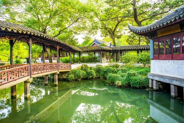 江苏苏州的明代园林典范,以水景为核心营造“咫尺山林”。借景北寺塔、框景漏窗、曲廊通幽,春赏杜鹃夏观荷,秋闻桂香冬品雪。卅六鸳鸯馆的蓝玻璃窗将阳光滤成水波,留听阁的雨打残荷声,尽显文人园林“虽由人作,宛自天开”的哲学。