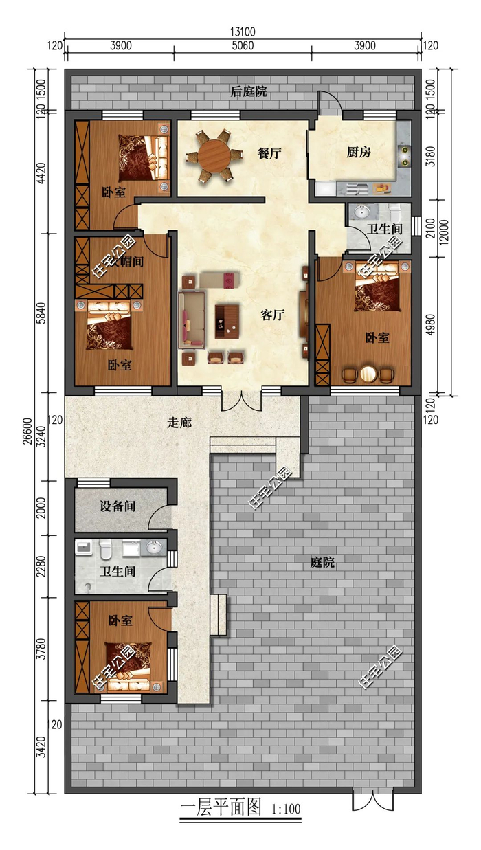 进深虽有20多米,但一半都是庭院,让您的住宅真正被绿色所包围。双开门厨房更适合农村实际情况,在户外杀鸡、处理蔬菜都不会把室内弄脏!