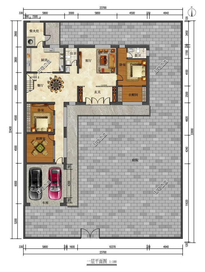 户型不仅有车库、棋牌室还有农村特色的柴火厨房,让您重温儿时美好的回忆。
