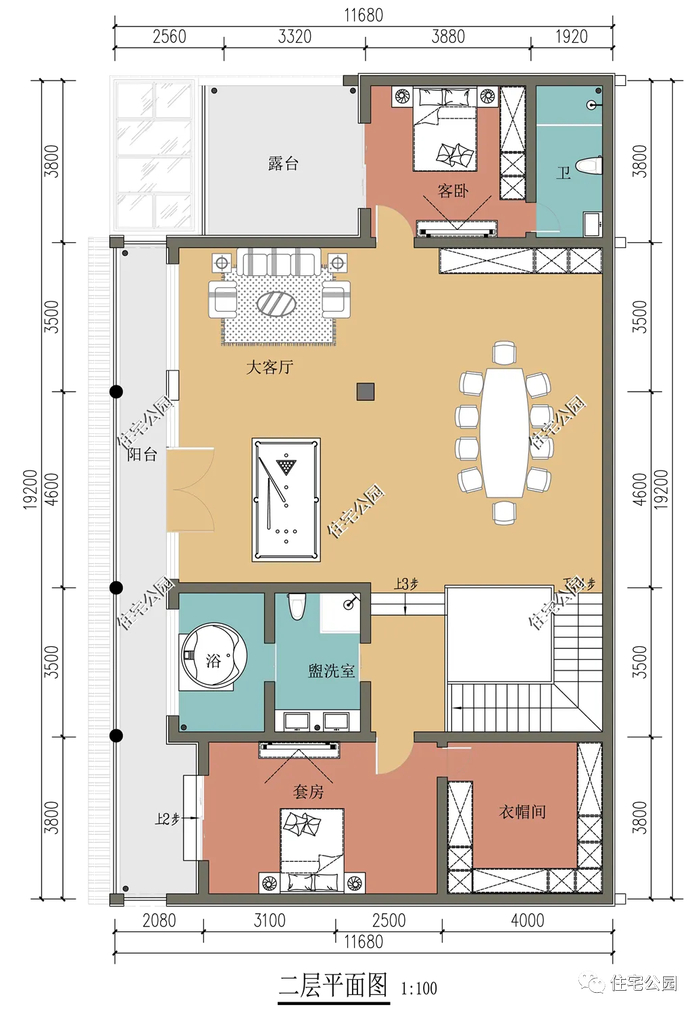 二层西北角设置书房,让您在看书学习或者是工作时不怕被其他人所打扰。