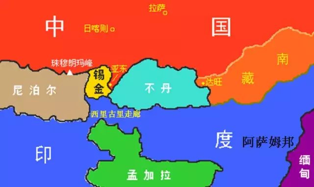 西里古里走廊,长20公里,最窄处只有21公里,南北连接锡金邦和孟加拉国,东西方向是印度本土连接东北各邦的唯一陆路。西里古里走廊是一片平原,无险可守,号称印度的七寸,是印度最大的软肋,所以印度为了增加其战略纵深,在1973年吞并了锡金。