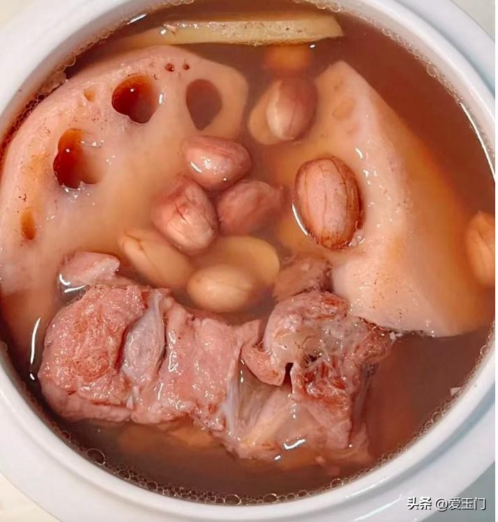 莲藕花生排骨汤是一道温润滋补的家常汤品。做法:1.排骨焯水去血沫,莲藕去皮切滚刀块,花生提前浸泡30分钟;2.将所有食材放入砂锅,加姜片、清水没过食材,大火煮沸后撇去浮沫;3.转小火慢炖1.5小时,至莲藕粉糯、花生绵软,加盐调味即可。此汤兼具莲藕的清甜与花生的醇香,适合秋冬季润燥养胃。若想汤色更浓白,可先用猪油煸炒排骨后再炖煮。