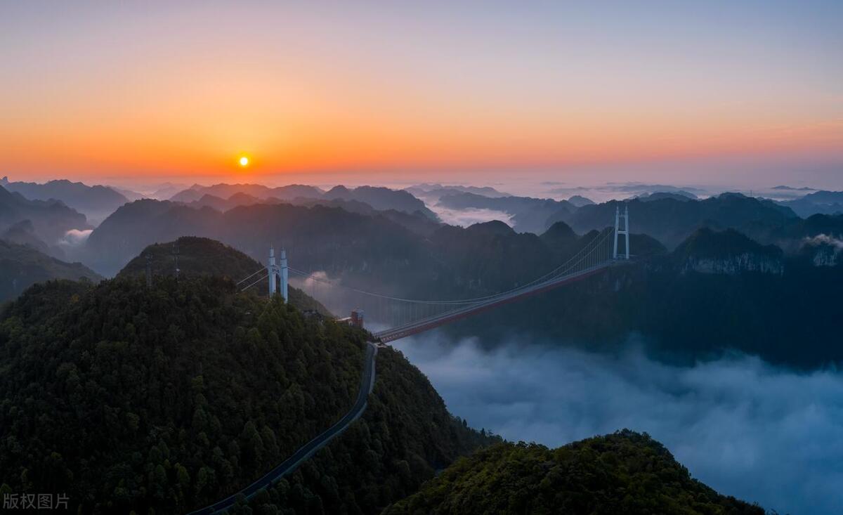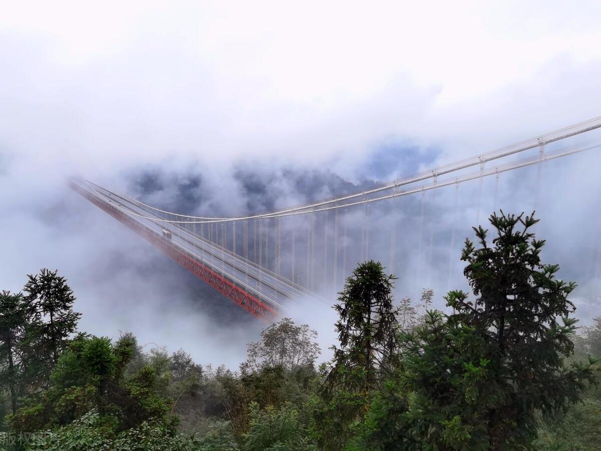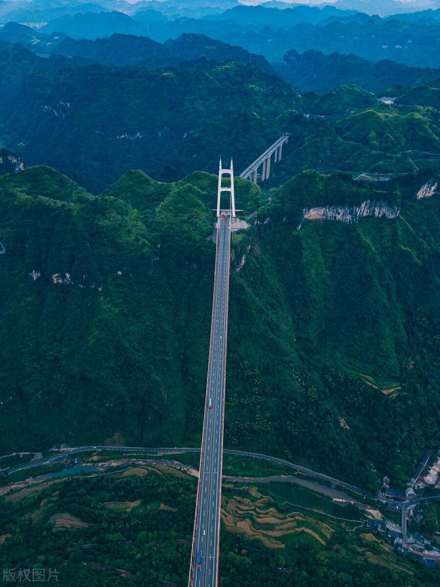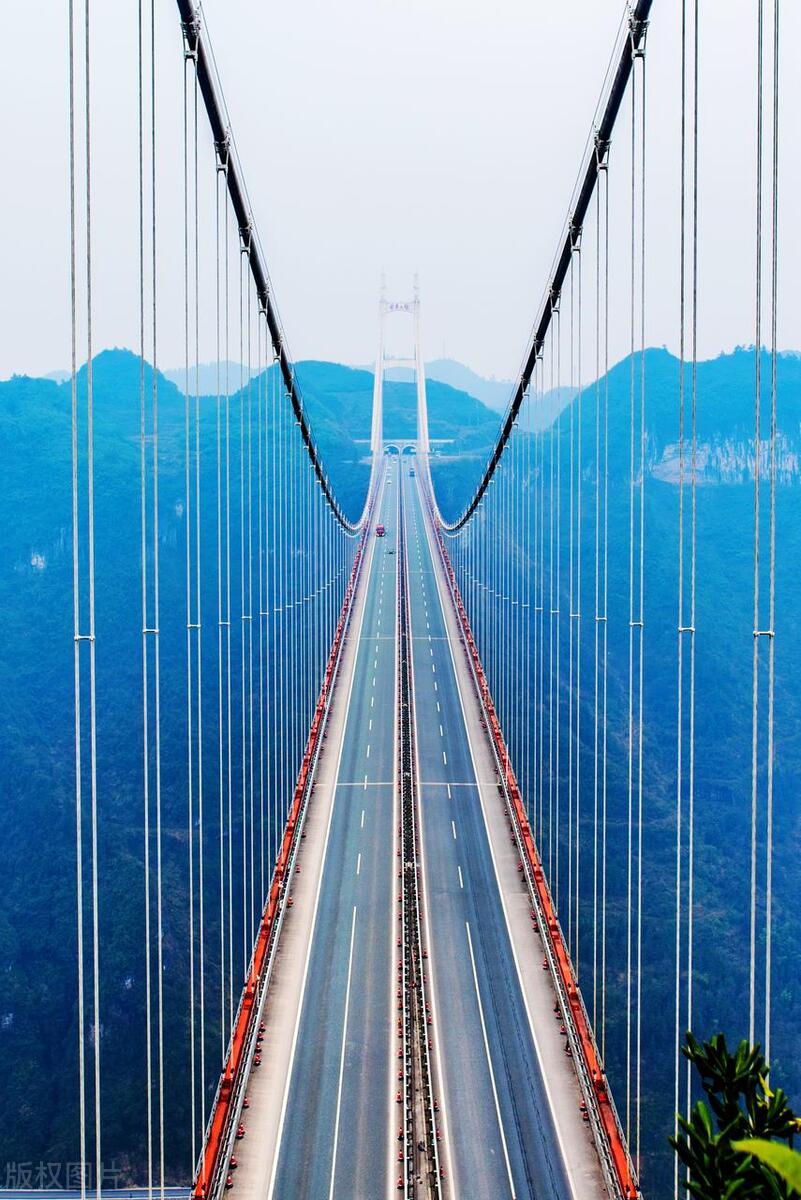 世界跨峡谷跨径最大悬索桥,主跨1176米,桥面与谷底高差355米(吉尼斯纪录认证),恐高人士估计不太敢从里开车过去吧~
