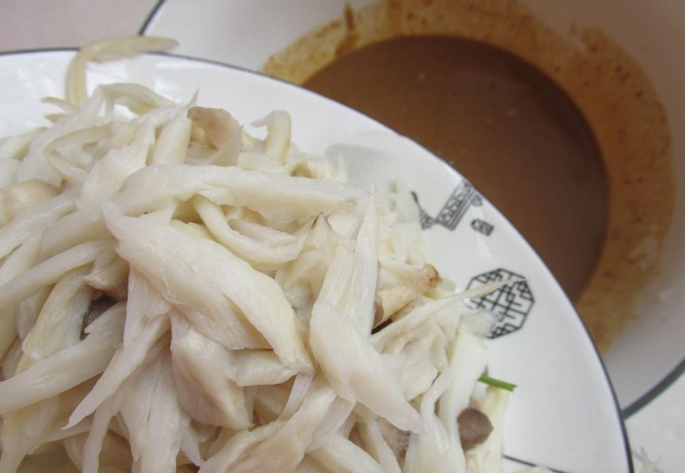 杏鲍菇挑那种没开花的,颜色白一点的比较新鲜。买回来先掰条儿,水开了扔进去煮半分钟就得捞出来,趁热过凉水才能脆。芝麻酱用凉白开搅稀,加点生抽醋蒜末,最后浇到杏鲍菇上拌匀就完事。要是嫌麻烦,酱油和醋直接调就行,不用非放芝麻酱。