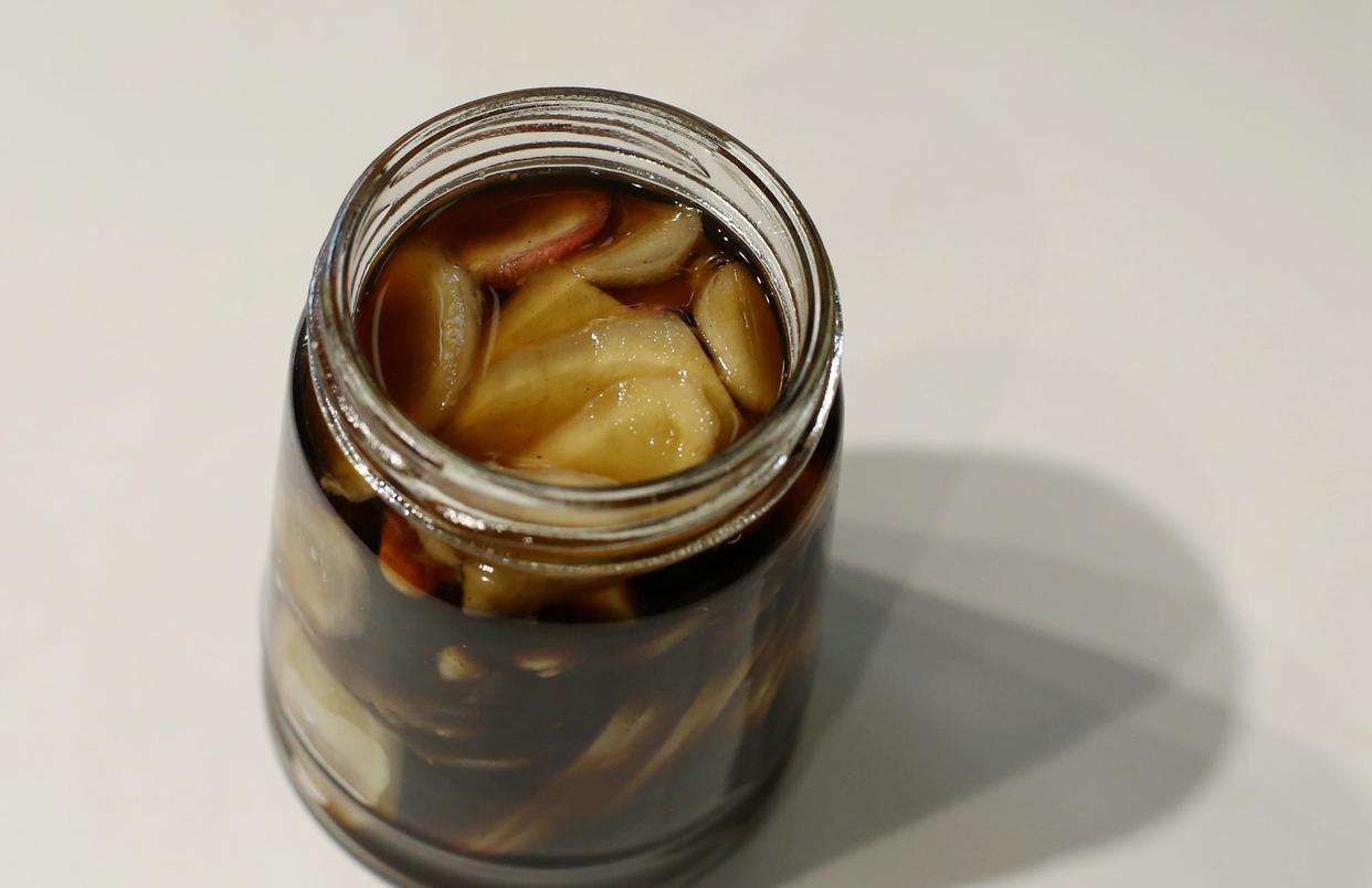 老陈醋:泡姜的醋,选用最正宗的老陈醋,他们的陈醋酿制技艺,是国家认可的老陈醋酿制技艺,被纳为国家级非物质文化遗产。