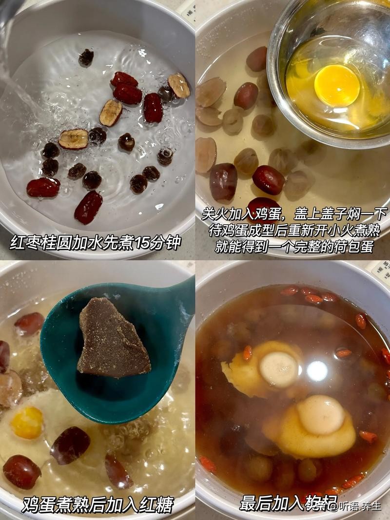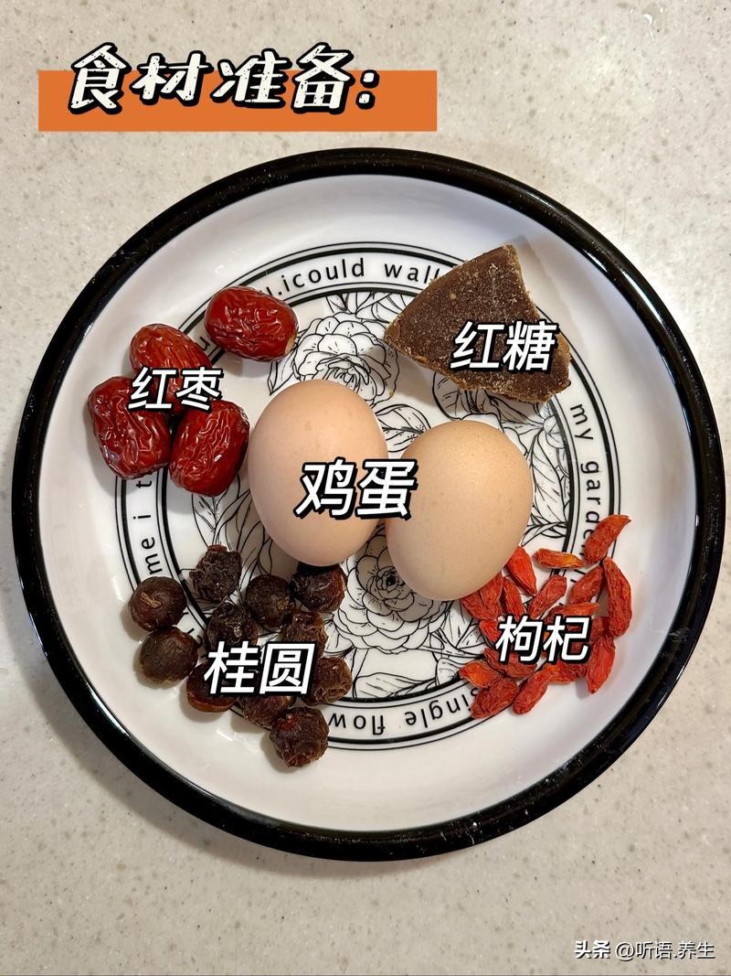 - 桂圆干 6~8颗- 红枣 5~6颗- 鸡蛋 1~2个- 红糖 适量(可选)- 清水 适量
