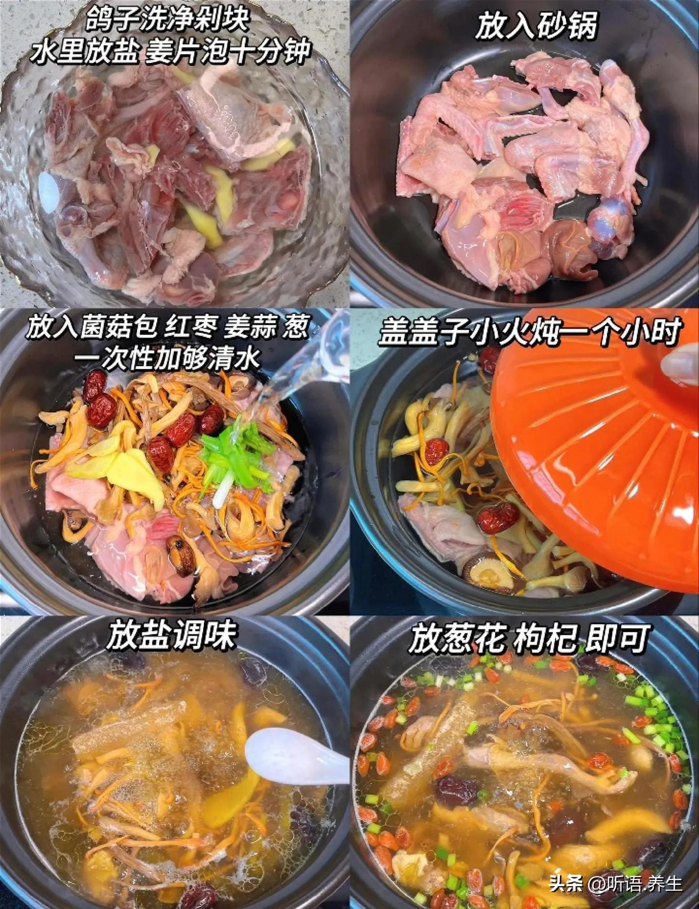 - 鸽子肉:高蛋白、低脂肪,补气养阴、恢复体力,适合体虚多梦。