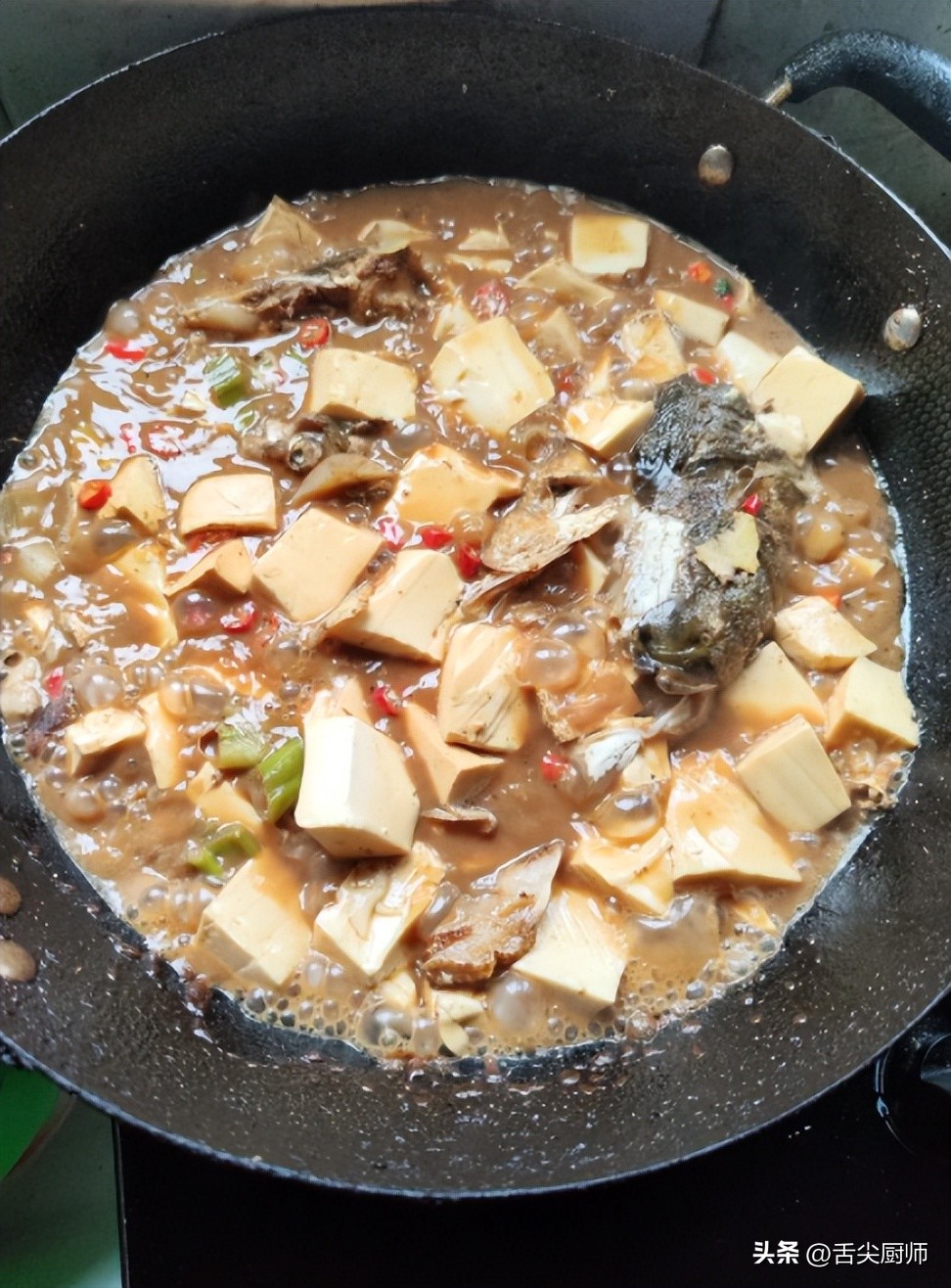 6. 放入豆腐块,继续炖煮15 - 20分钟,直到豆腐变得蓬松,吸收了鱼汤的鲜味。