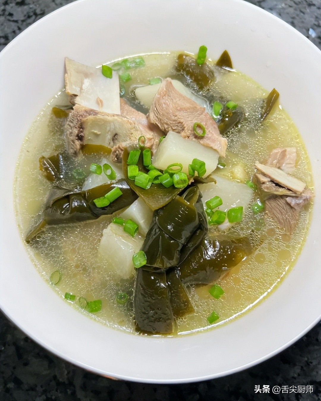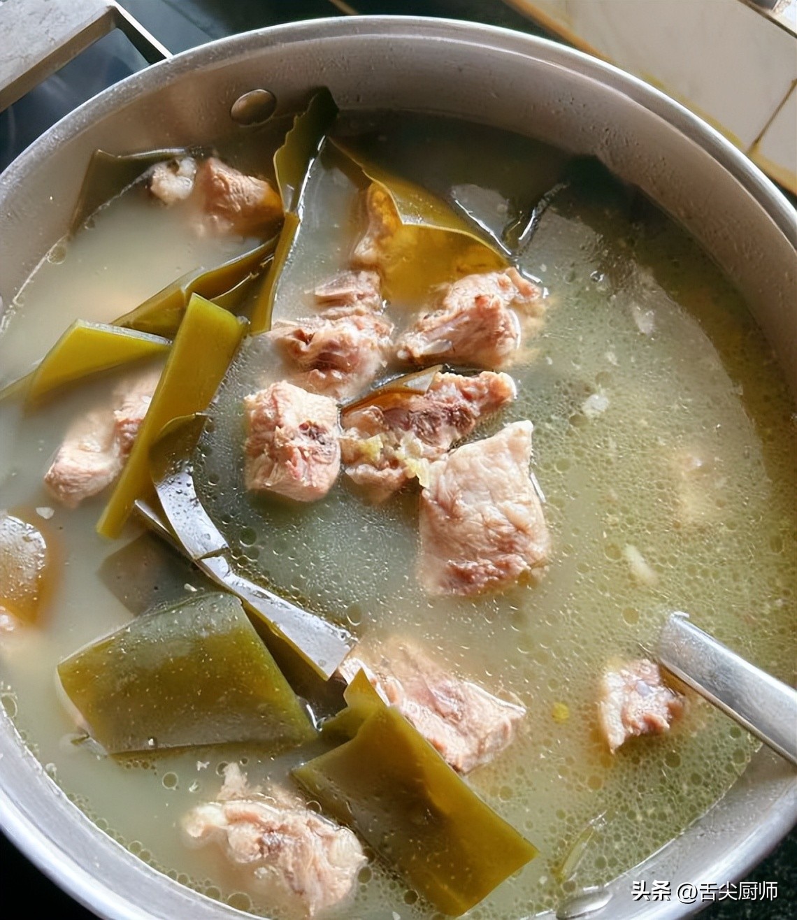 6. 放入海带块,继续炖煮30 - 40分钟,直到排骨和海带都变得软烂。