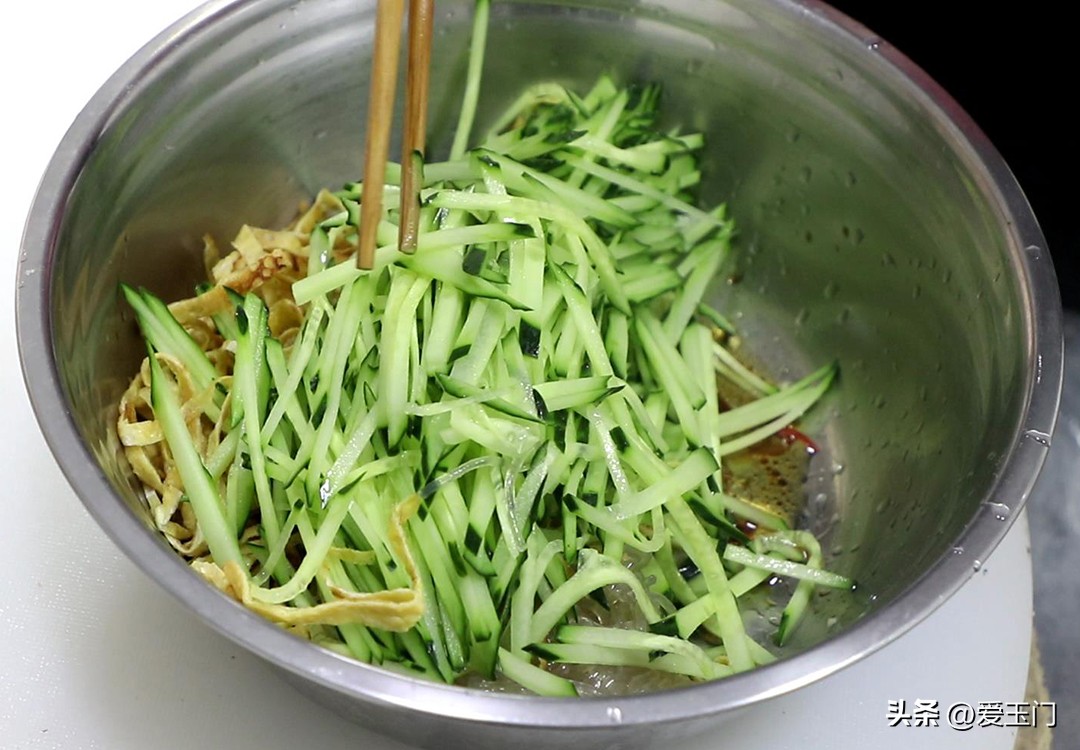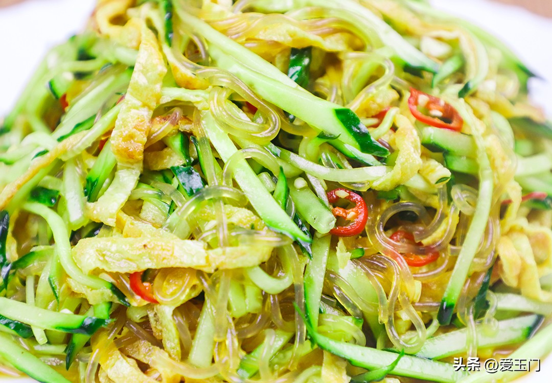 6.好了,一道清脆又营养的凉拌黄瓜鸡蛋皮就做好了。