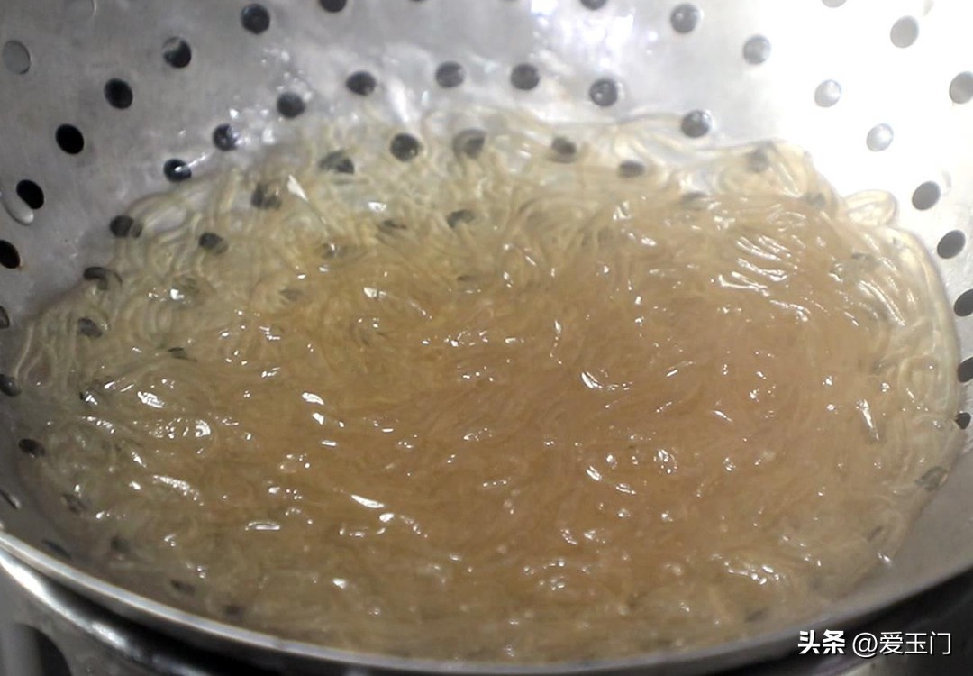 1.首先,准备粉条一把,锅内烧水,加入少许植物油,把粉条放入锅中,大火把水烧开,转中火煮2分钟左右,粉条煮软煮熟后倒出。用清水冲洗几下,冷却控水,过凉水能保留粉条筋道的口感,又不容易坨在一起。