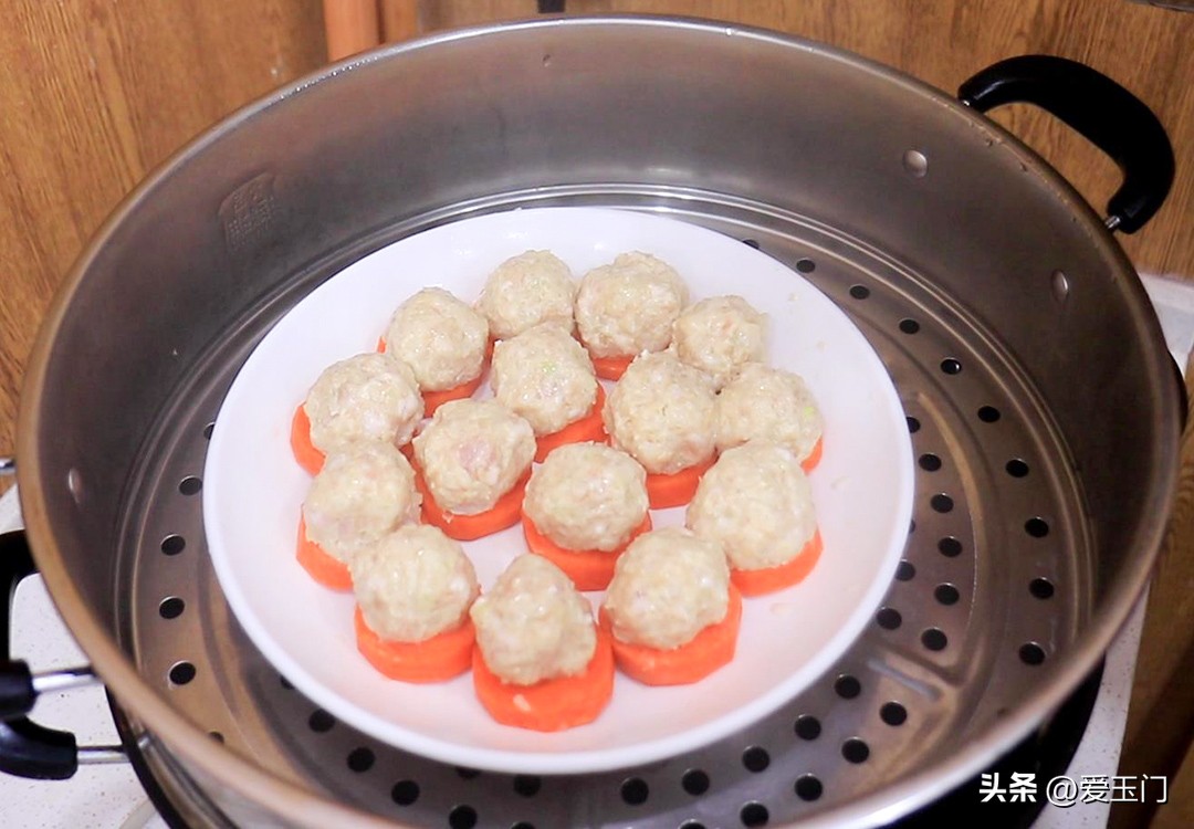 6.蒸锅中水烧开以后,放入准备好的丸子,中火蒸15分钟即可。15分钟以后,把蒸好的丸子取出来。