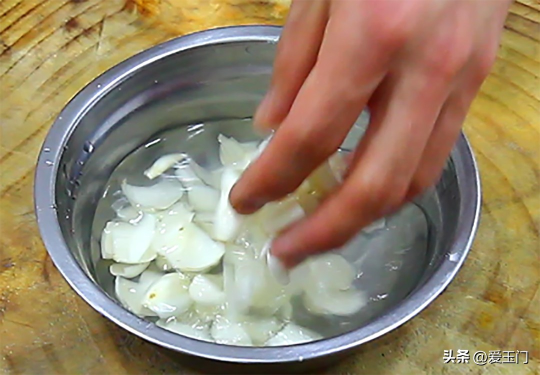 3.准备适量的百合,一个一个掰散泡在清水里,买不来百合的也可以换成其它配菜。