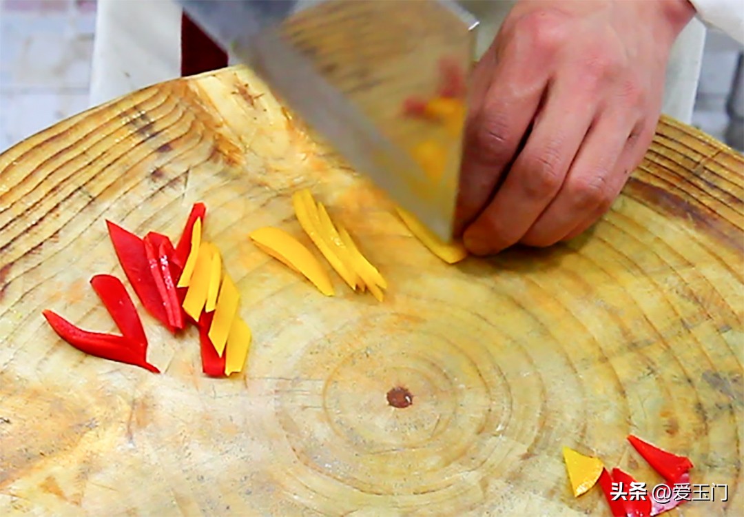 2.准备几根小葱,切成葱花。彩椒两片,切成宽条,放在盆中,用来配色。