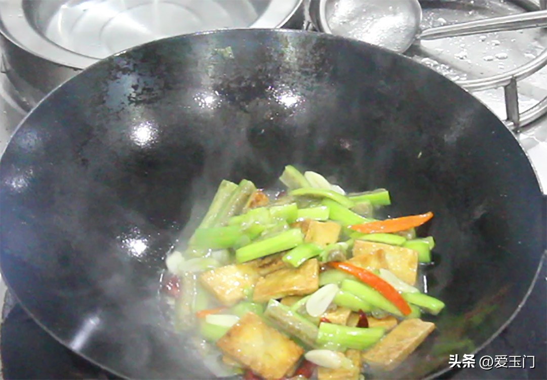 5.锅内烧油,倒入葱,姜,蒜,干红椒爆香,加入一勺清水,倒入适量的食盐,胡椒粉,鸡粉,蚝油,化开调料后倒入丝瓜和豆腐,加水煨1分钟,再加入一点水淀粉,使汤汁更浓郁粘稠,丝瓜更好入味,收汁后淋入芝麻油即可出锅装盘。