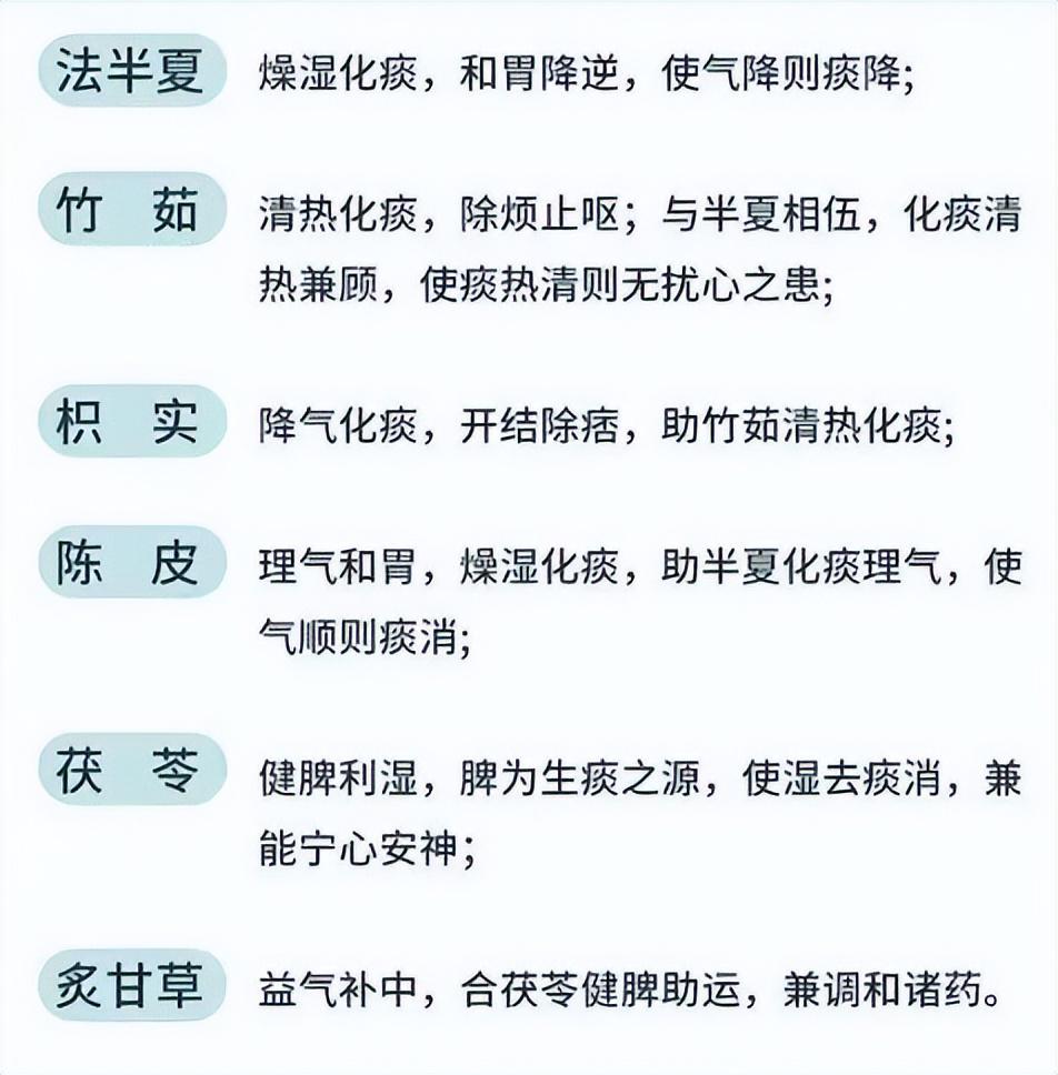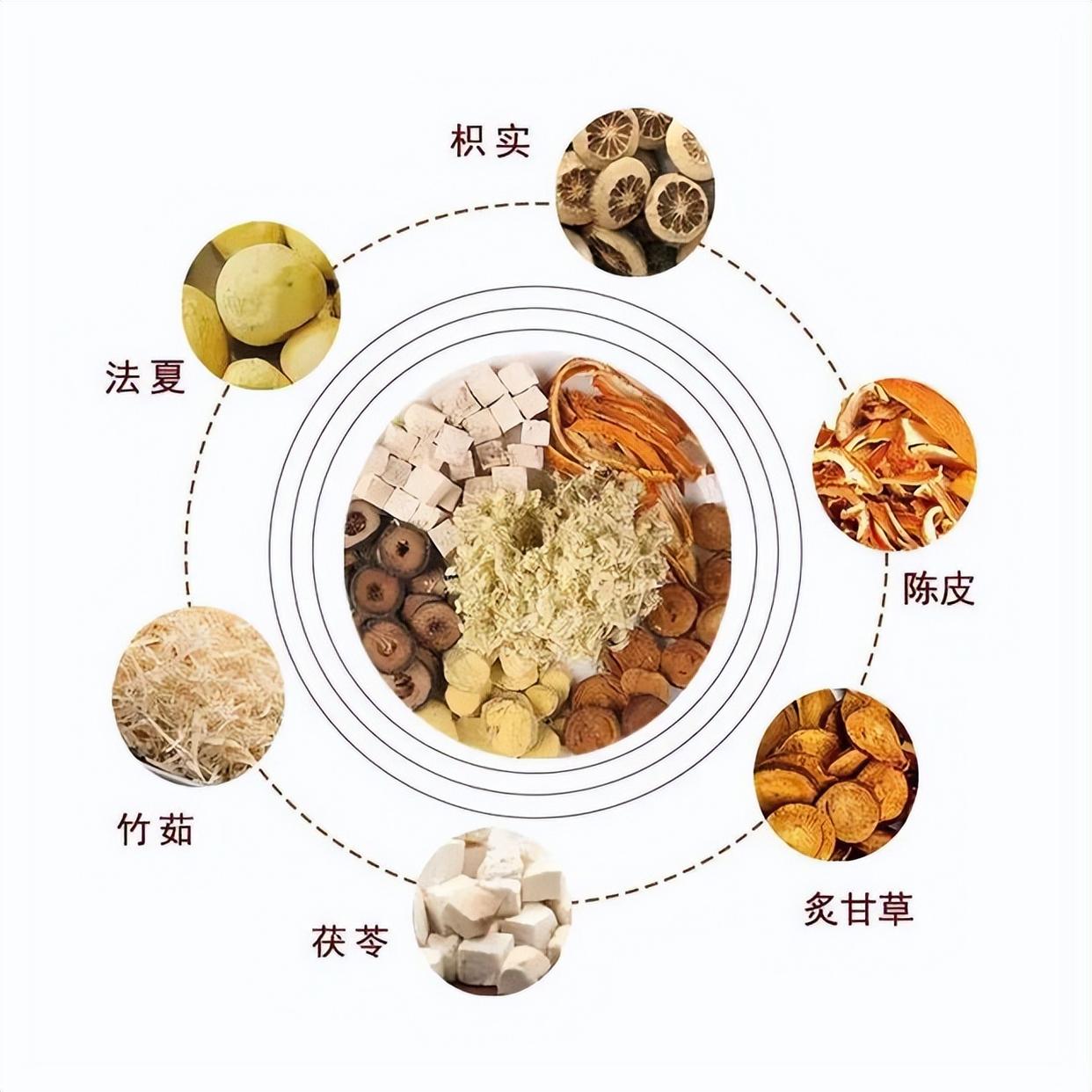 朋友们可以按照这个材料和配比去搭配,茯苓30克,半夏6克,枳实6克,炙甘草6克,陈皮9克,竹茹6克。