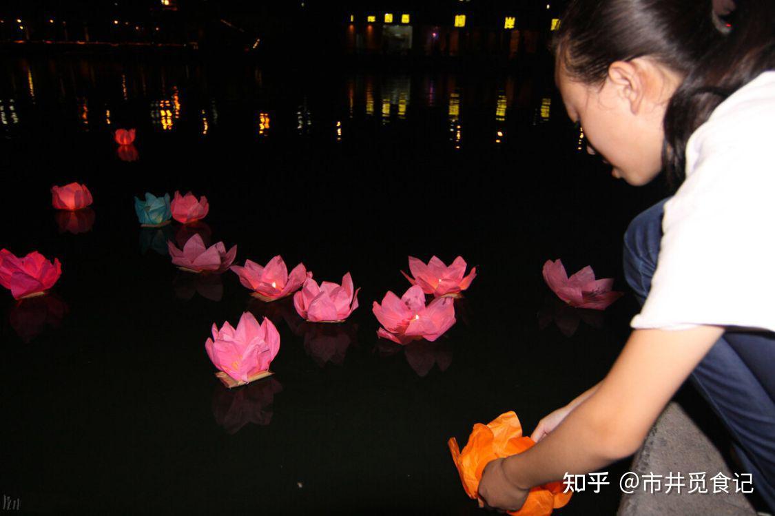“火里莲花水上开,乱红深绿共徘徊”,中元节里最美丽的民俗景象就是大家共放莲花灯,因是放在流动的河水之中,所以又被叫做放河灯。莲花灯以荷花作为灯底,荷花在我国传统文化中除了代表着洁身自好、清正廉洁等高尚品质外,还有团圆美满的美好寓意,而灯盏、蜡烛则有着驱除黑暗,智慧照亮人生之意。