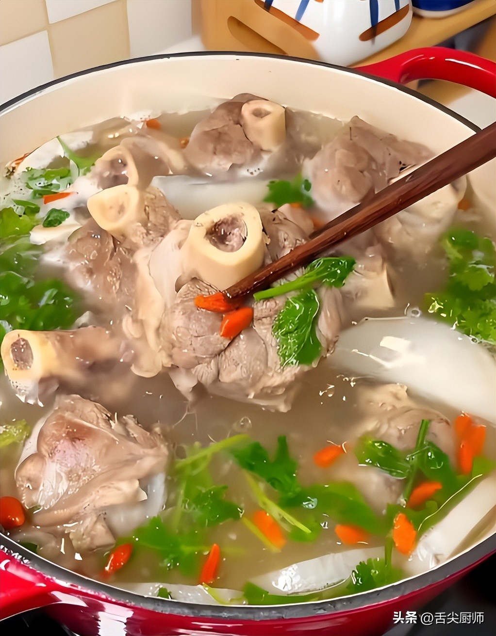 6. 加入枸杞: 炖煮接近2小时后,加入枸杞,继续炖煮30分钟。枸杞增加了汤的甜味和营养。
