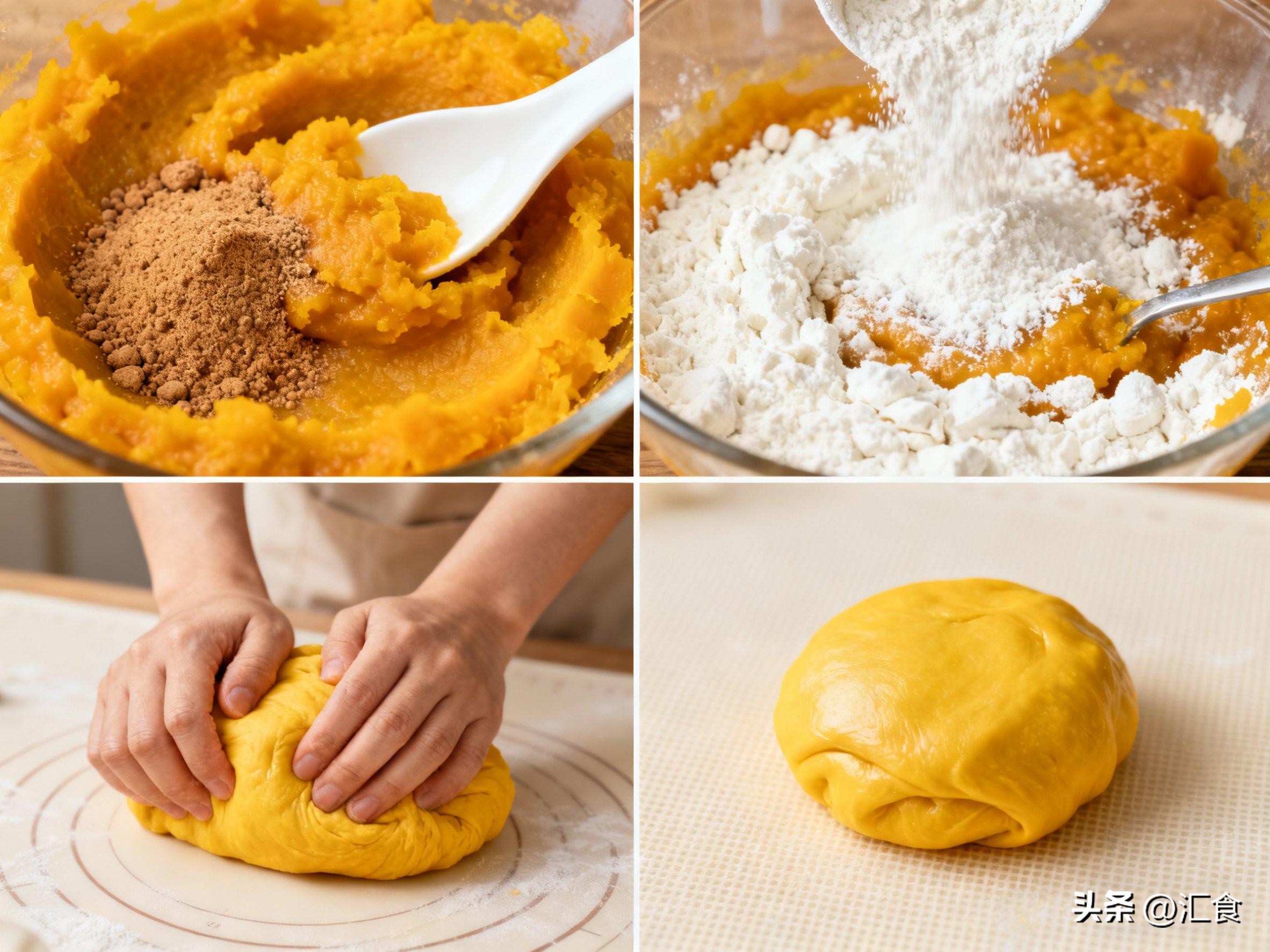 步骤2:揉出光滑南瓜面团——馒头松软的关键