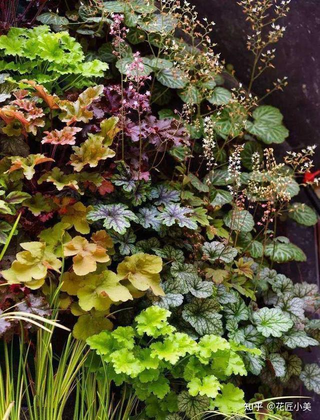 矾根又被称作是上帝打翻的调色板,叶子的颜色非常的丰富,可以媲美花朵的色彩。由于梵根非常的耐阴,因此常常被种在花园的低矮之处,丰富层次,增加色彩。