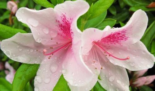 对于一些喜湿润的花卉如杜鹃、山茶、含笑、栀子、米兰等,就要按“见干见湿”的原则浇水。
