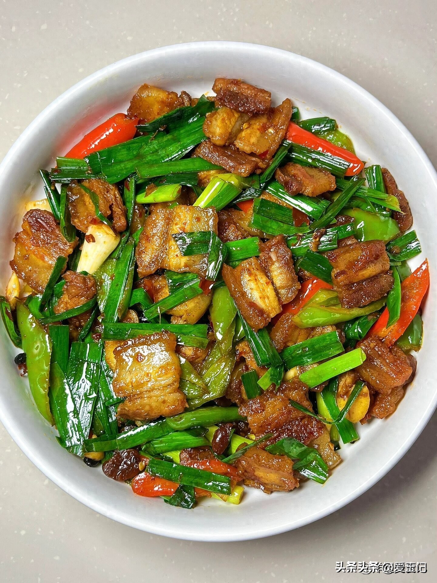 蒜苗叶小米辣炒五花肉