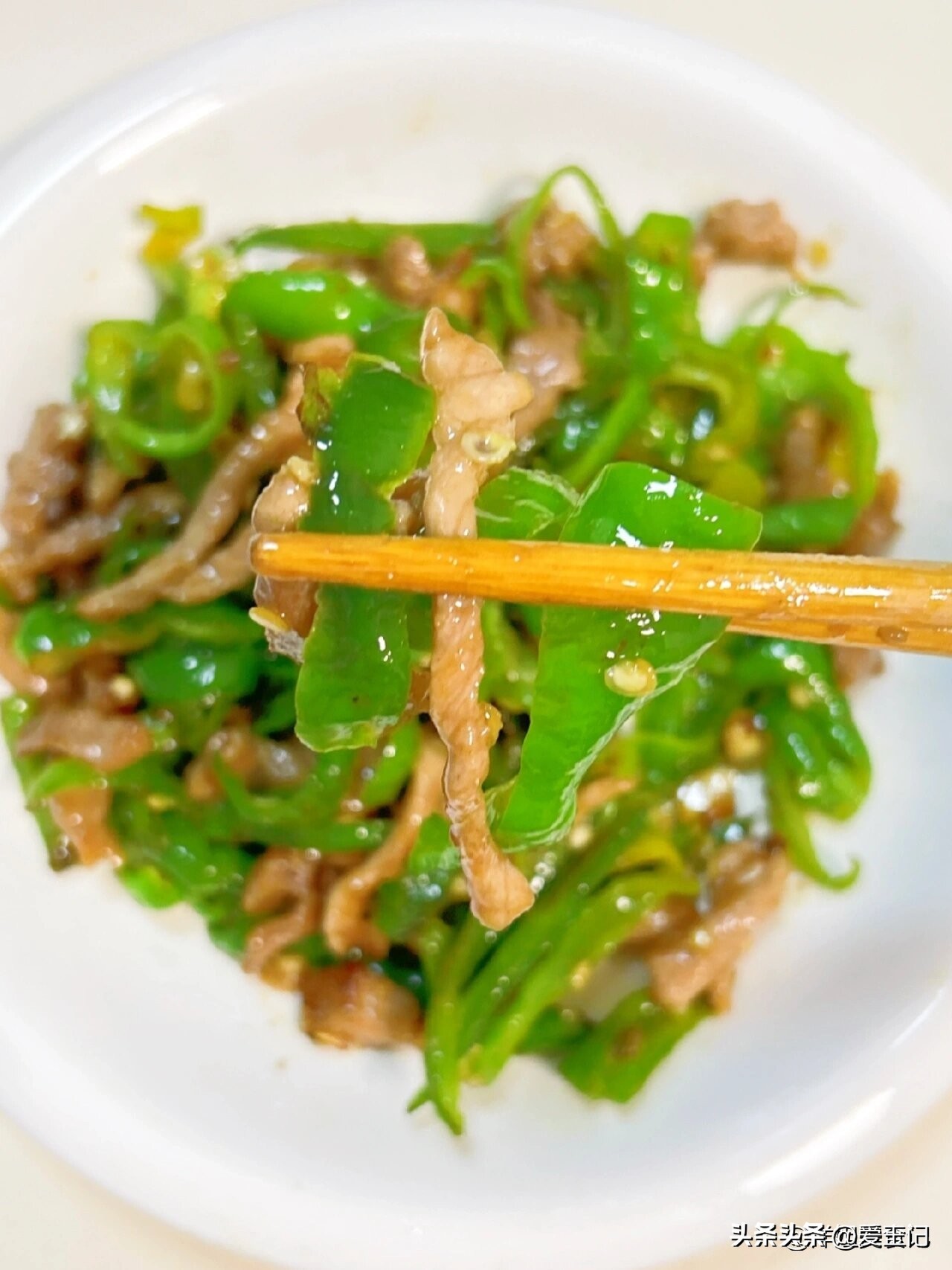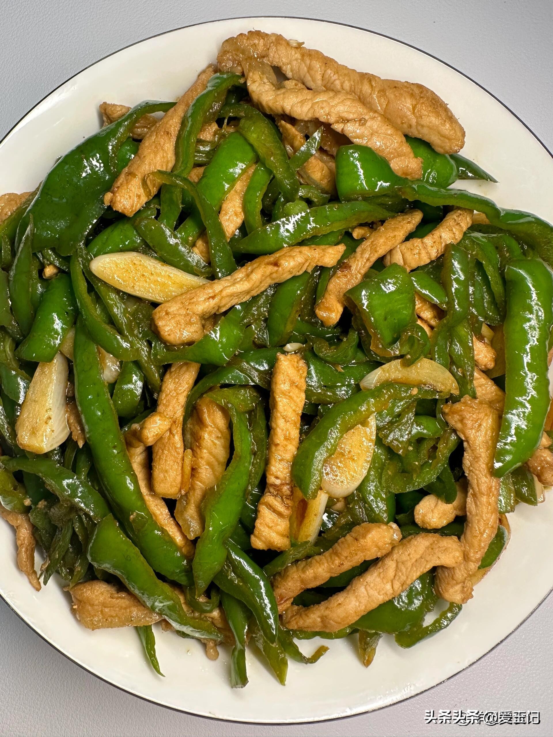 蒜片肉丝炒葱香青椒