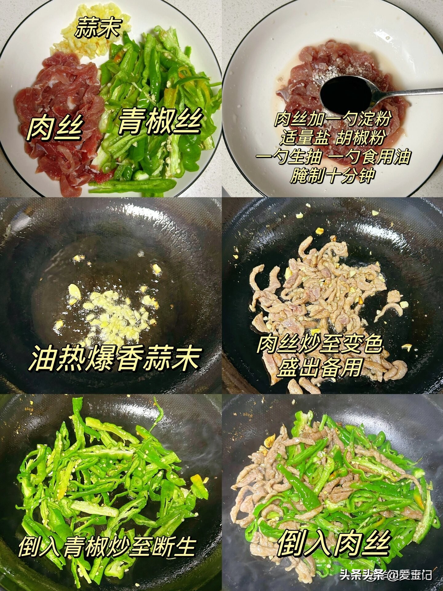 青椒丝蒜末姜丝炒肉