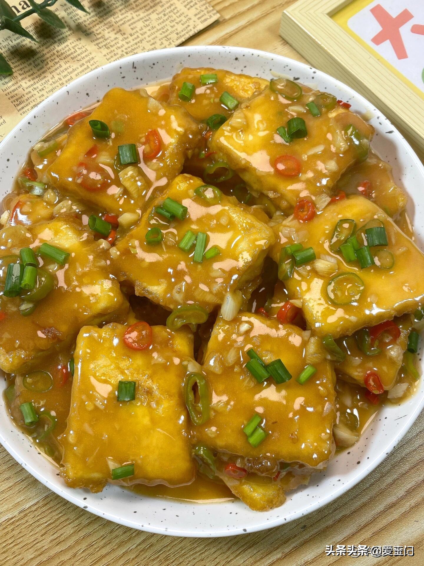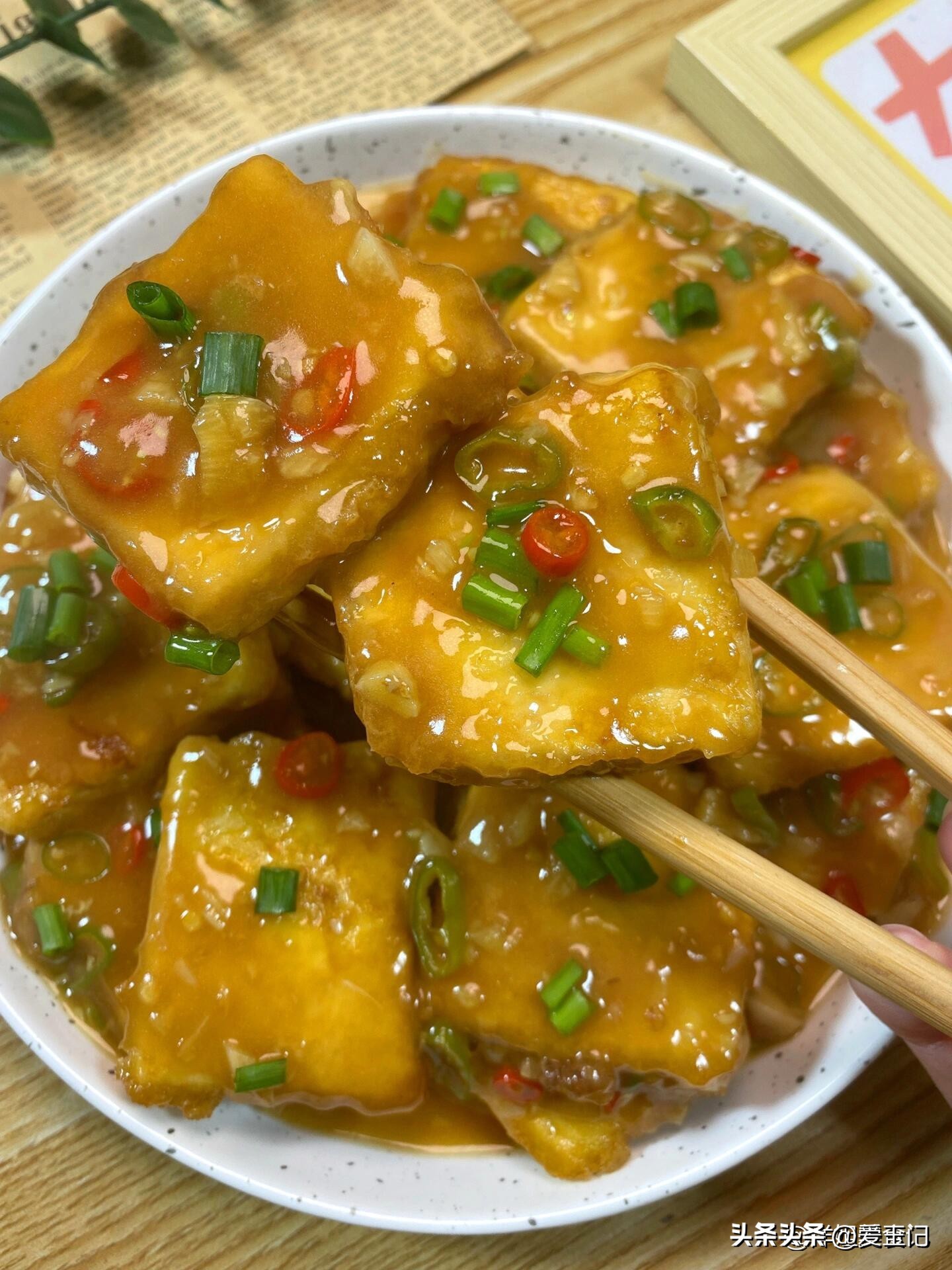 香菜葱花酱汁裹豆腐块