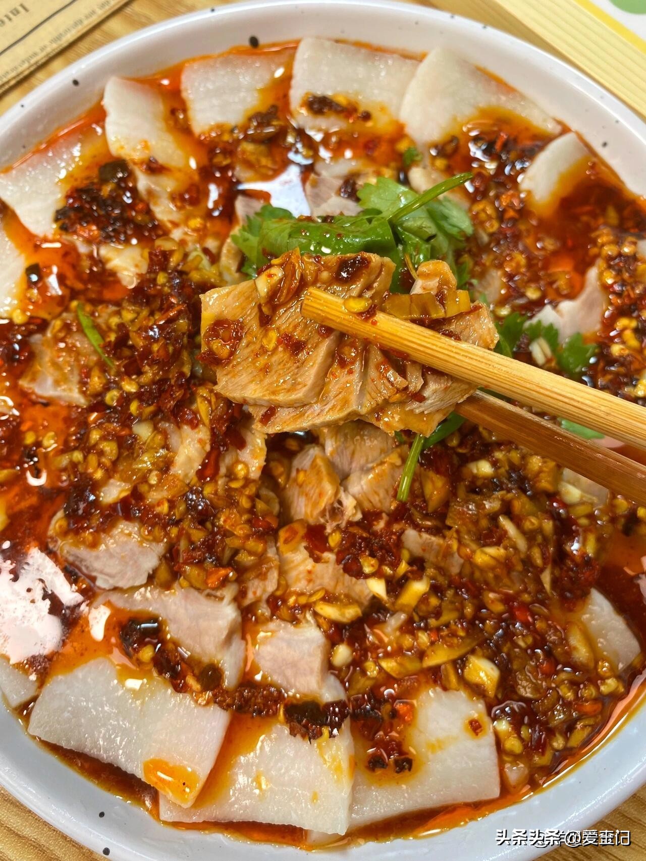 姜丝香辣葱花料汁五花肉片