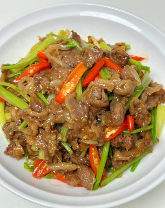 香菜小米辣炒牛肉,鲜嫩牛肉吸饱小米辣的火辣与香菜的清香,香辣中带着独特草本气息,口感弹嫩,一口唤醒味蕾!