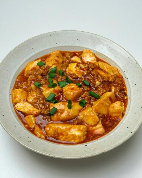 麻婆豆腐滑嫩滚烫,裹满香辣浓郁的红油酱汁,花椒的麻、辣椒的辣在舌尖炸开,一勺入口,鲜辣过瘾超下饭!