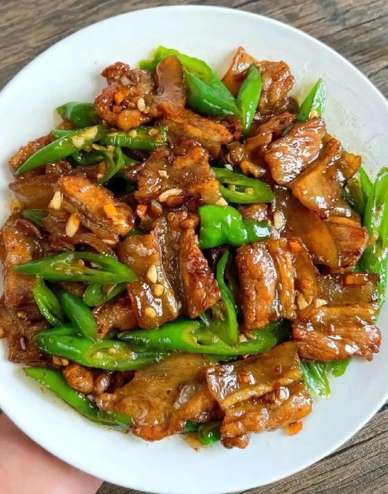 线椒炒五花肉辣香扑鼻,五花肉油润弹嫩,线椒脆爽微辣,咸鲜交织,油脂香裹着椒香,下饭绝配,口口过瘾。