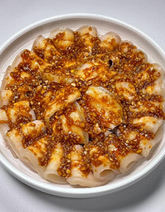 蒜泥白肉以肥瘦相间五花肉为主,淋蒜汁。特色是蒜香冲、肉软嫩,肥而不腻,辣中带鲜,咸香开胃,是川味凉菜经典。