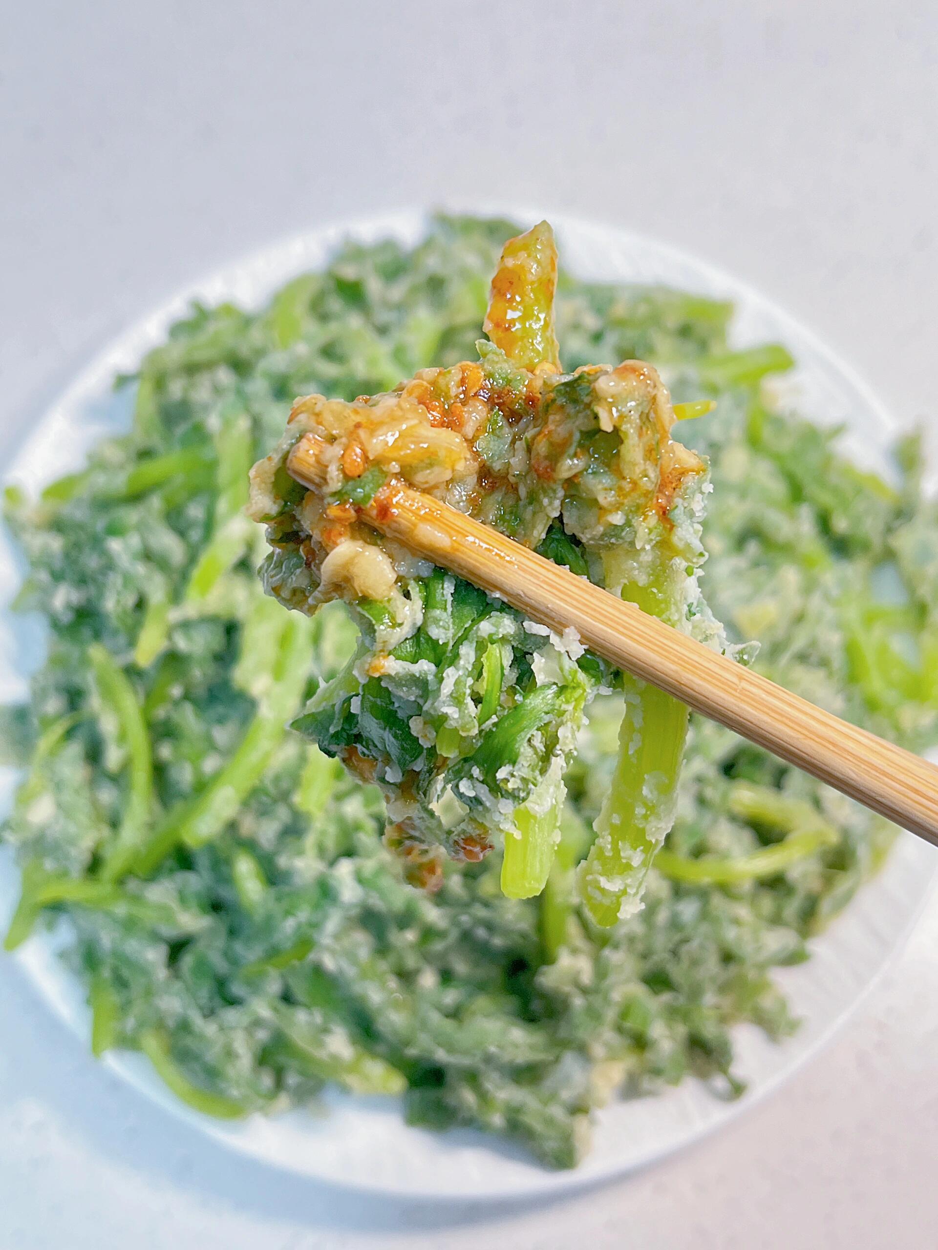 第一道必吃:蒸茼蒿。茼蒿素有“皇帝菜”的美誉,自带独特清香,是养肝理气的春日佳品。炒茼蒿极易出水软塌,营养和香气全流失,蒸着吃才是锁住精华的最佳做法。将茼蒿切寸段,先淋一勺食用油抓匀,给每片叶子裹上油膜,再撒面粉抖散;蒸锅水烧开后上锅,大火仅蒸3-4分钟,出锅立刻抖散晾凉。搭配蒜泥、生抽、香醋调的蘸汁,清鲜绵软、满口留香,养肝解腻一步到位。