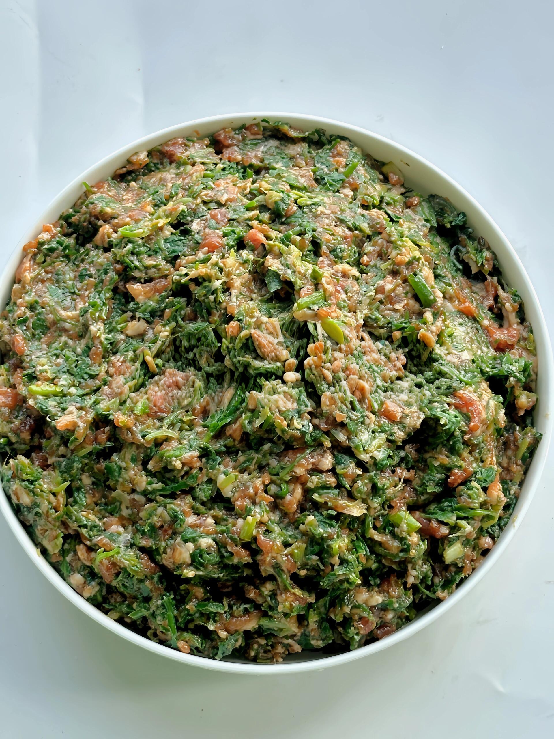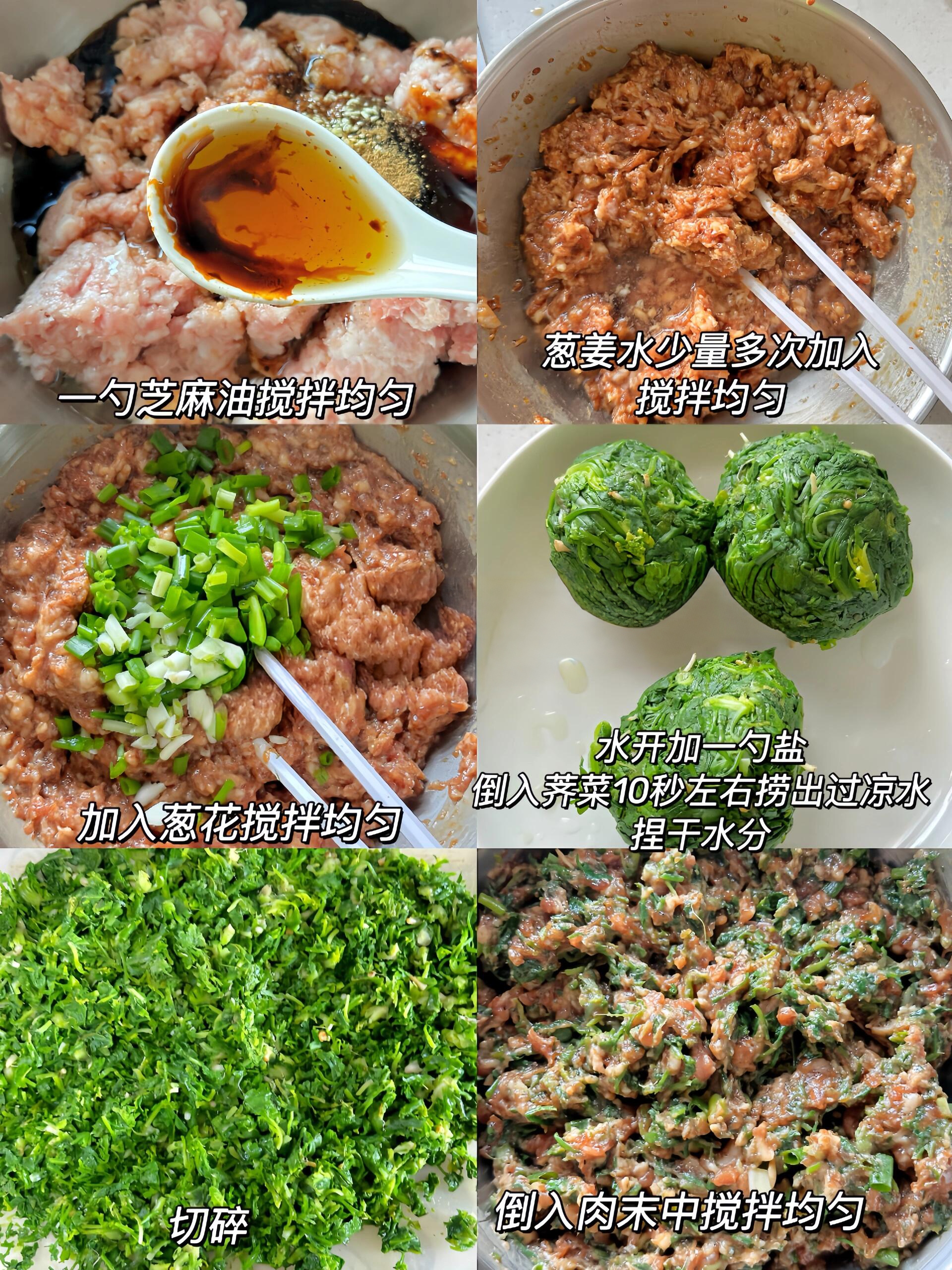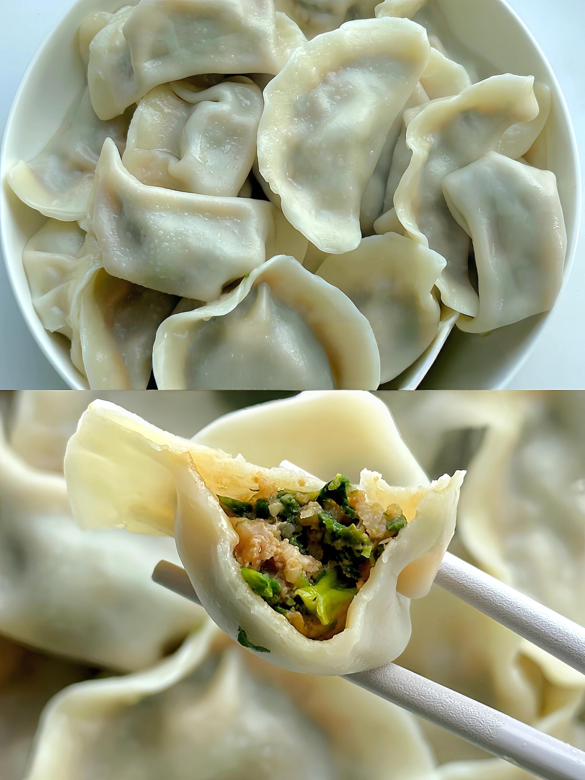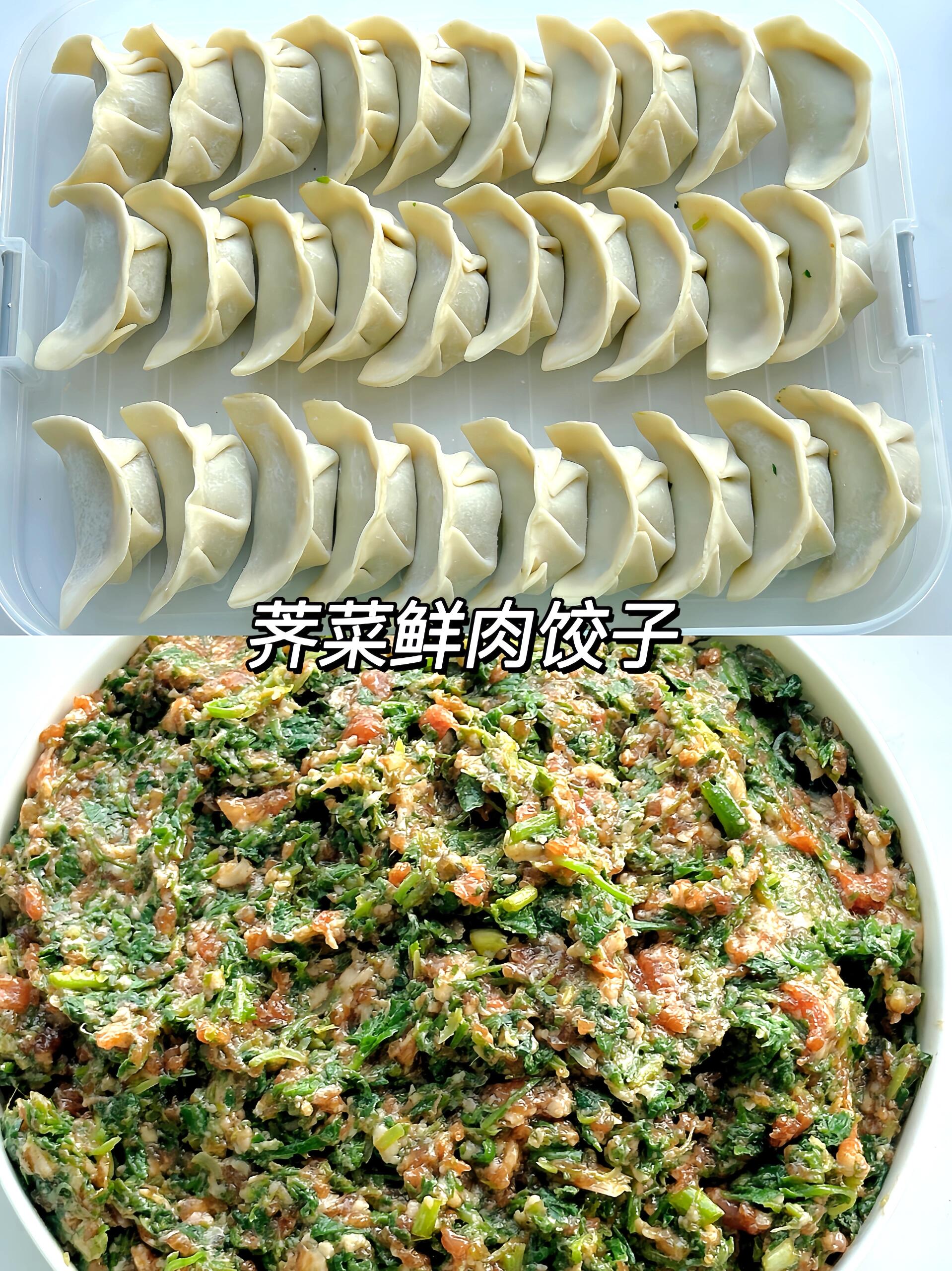 第二道经典:荠菜猪肉饺。老话讲“三月三,荠菜当灵丹”,作为春日报春菜,荠菜养肝清热、排毒养颜,做成饺子鲜到极致。荠菜焯水10秒至碧绿,攥干水分后淋香油油封,避免发干发柴;三分肥七分瘦的肉馅加调料,分次打入葱姜水搅至上劲,临包前再混合馅料。煮好的饺子皮薄馅足,荠菜的清鲜混着肉汁迸发,鲜香不柴,一口解锁春日限定美味。