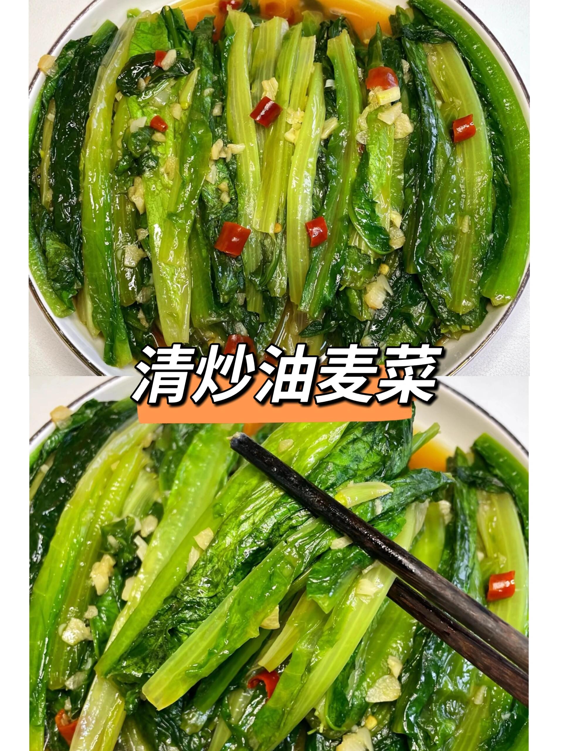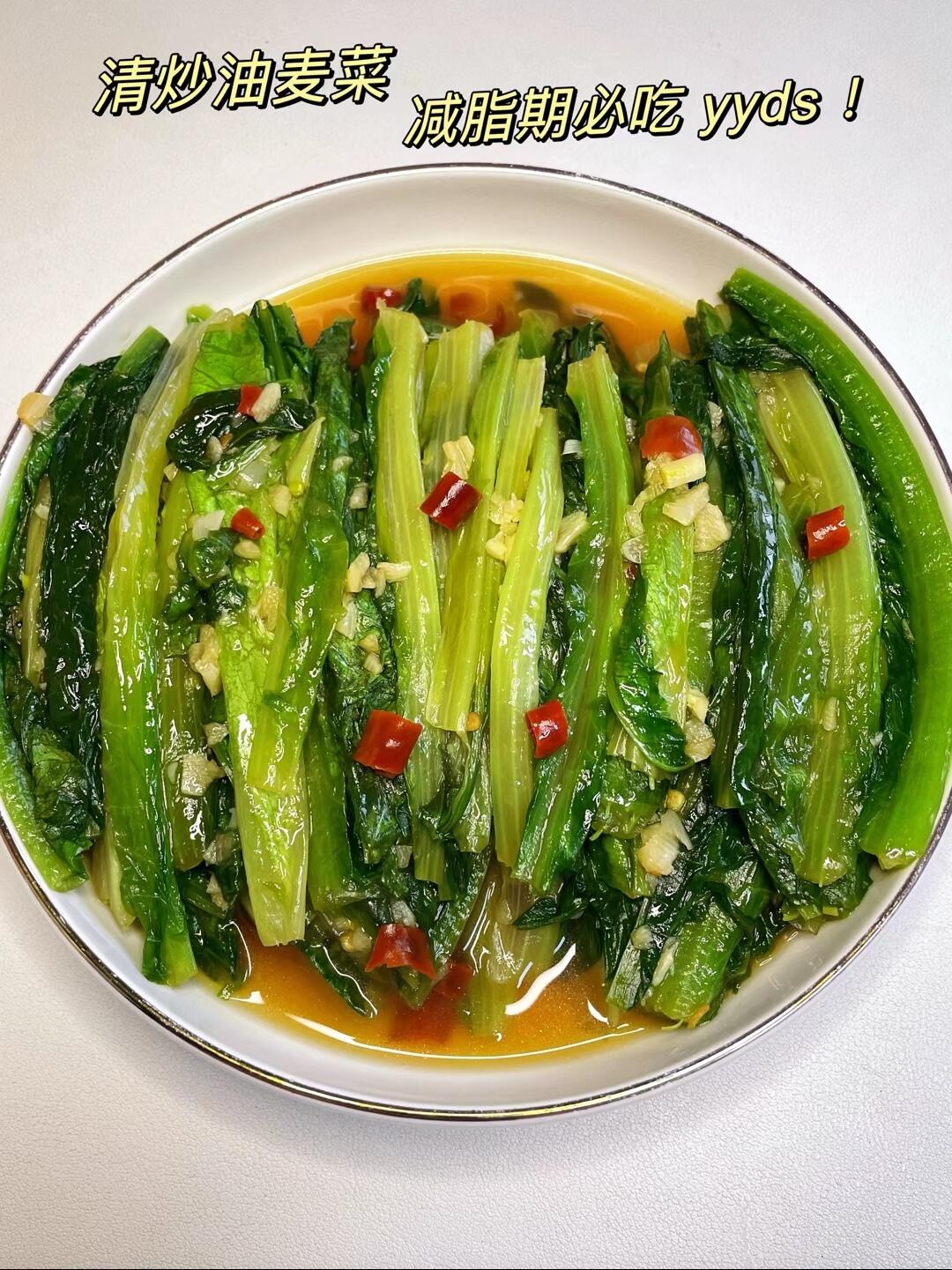 第三道快手:清炒油麦菜。油麦菜富含胡萝卜素,养肝明目超适合长期看手机的人群。想炒得翠绿脆爽、绝不出水,核心就是“大火快炒”。油麦菜彻底沥干水分,锅烧至冒烟倒油,蒜末爆香后立刻下菜,全程大火翻炒30秒即可出锅。蒜香浓郁、脆嫩爽口,做法简单到零失败,护眼养肝又下饭。