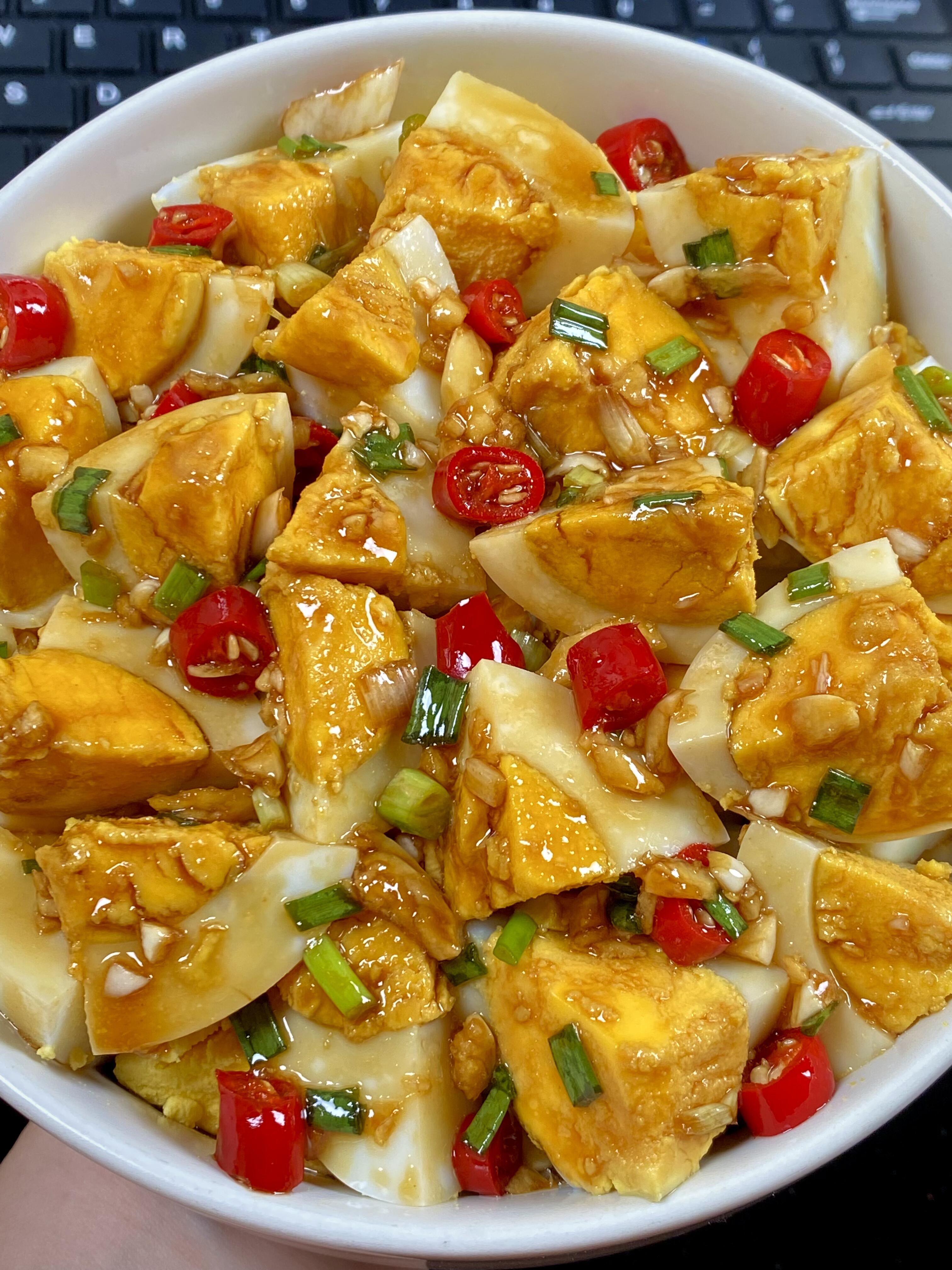 凉拌鸡蛋是低脂清爽的首选。鸡蛋煮熟切块,淋上生抽、香醋、香油、蒜末调的凉拌汁,简单一拌就好吃。口感Q弹鲜香,没有油腻感,不管是当早餐、佐餐,还是减脂期吃都超合适,清爽不寡淡,老人孩子都爱吃。